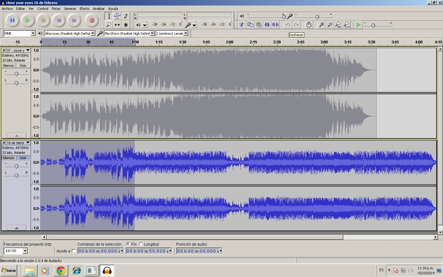 Para este proyecto utilizamos canciones el primer proyecto fue de